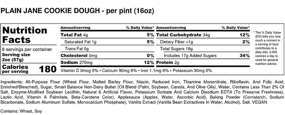 Please NOTE: Each flavor provides information on one 16-ounce pint of cookie dough at a 2oz serving size.